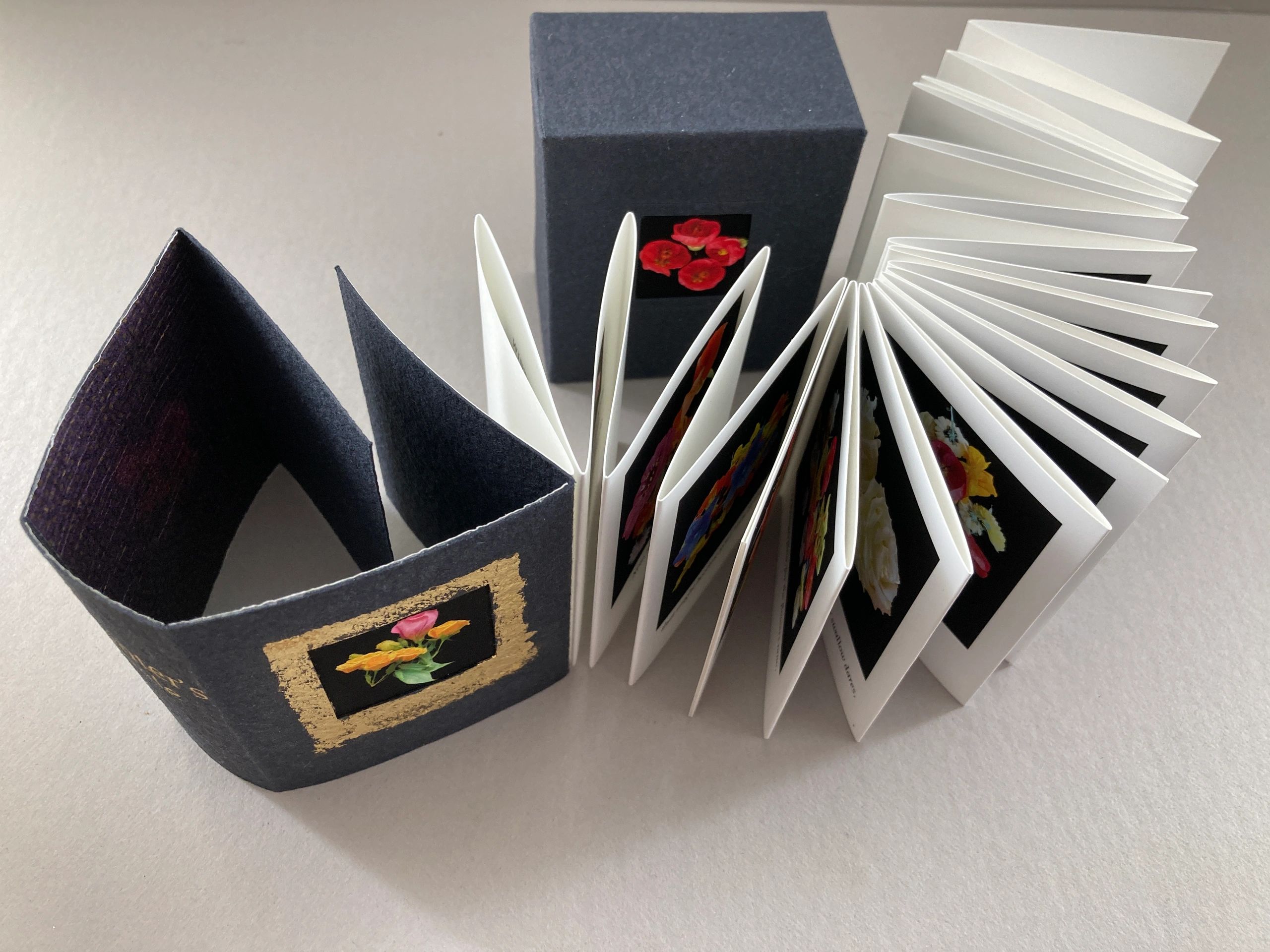 I accept commissions to create contemporary fine art bindings and presentation boxes. Exhibition bindings, both large and miniature, are often available for sale. Contact me and I will send you a catalog!